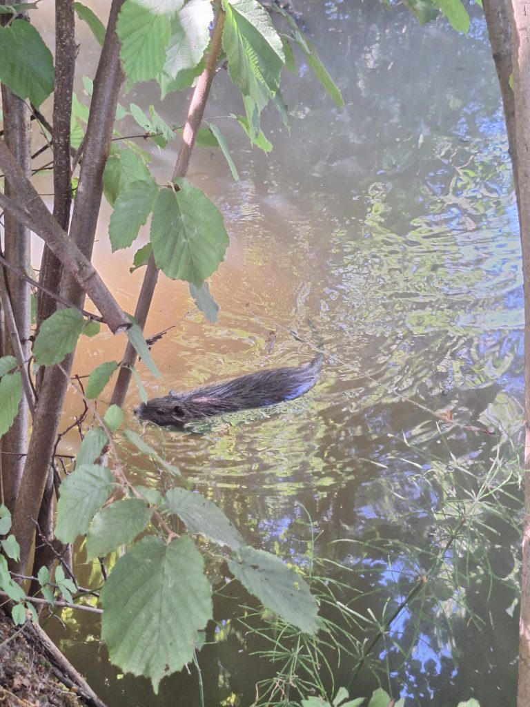 Nach vielen interessanten Infos über dieses große Nagetier wanderten wir zum Biberbau, den es in der Nähe unserer Schule gibt. Biber haben wir keinen gesehen, den die sind nachtaktiv, dafür konnten wir ihren beeindruckenden Bau und etwas weiter den Fluss entlang auch einen Biberdamm bestaunen. Schon sehr beeindruckend so etwas aus nächster Nähe zu sehen. Und ein Nagetier haben wir trotzdem gesehen. Nämlich eine Nutria, die ist nämlich tagaktiv.