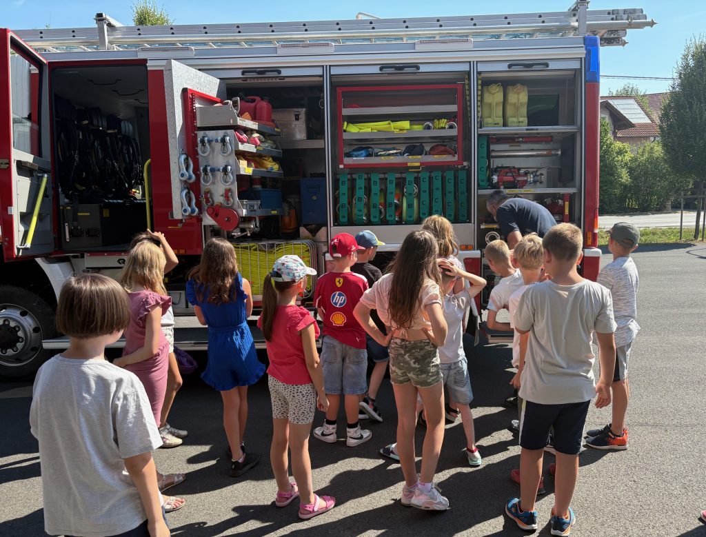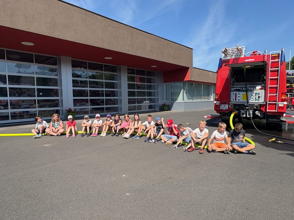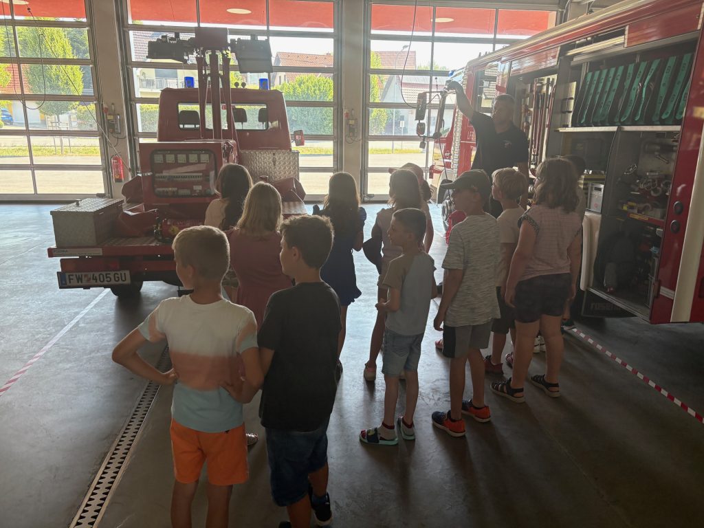 In der letzten Schulwoche besuchten die Kinder der Löwen- und Otterklasse die Freiwillige Feuerwehr bei uns in Dobl. Nach einigen theoretischen Fakten zu wichtigem Wissen rund um die Feuerwehr und andere Einsatzorganisationen durften die Kinder alles anschauen und so einiges ausprobieren.