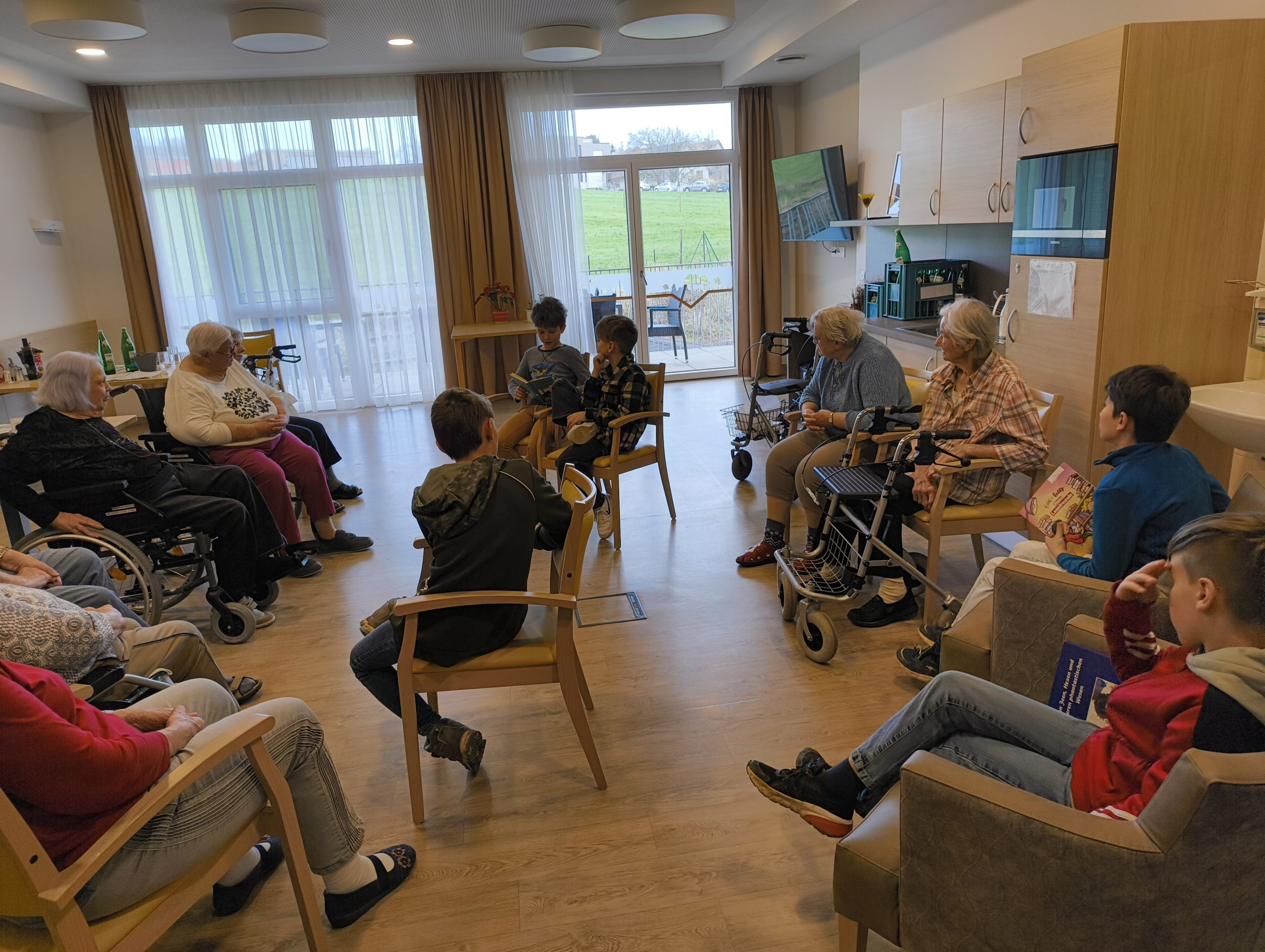 Im Altersheim wurden unter anderem Sagen, Gedichte und auch der eine oder andere Witz vorgelesen. Die Kinder kamen ins Gespräch mit den Bewohnerinnen und Bewohnern, es wurde gelacht, zugehört und miteinander Zeit verbracht. Eine wertvolle Begegnung für Jung und Alt.
