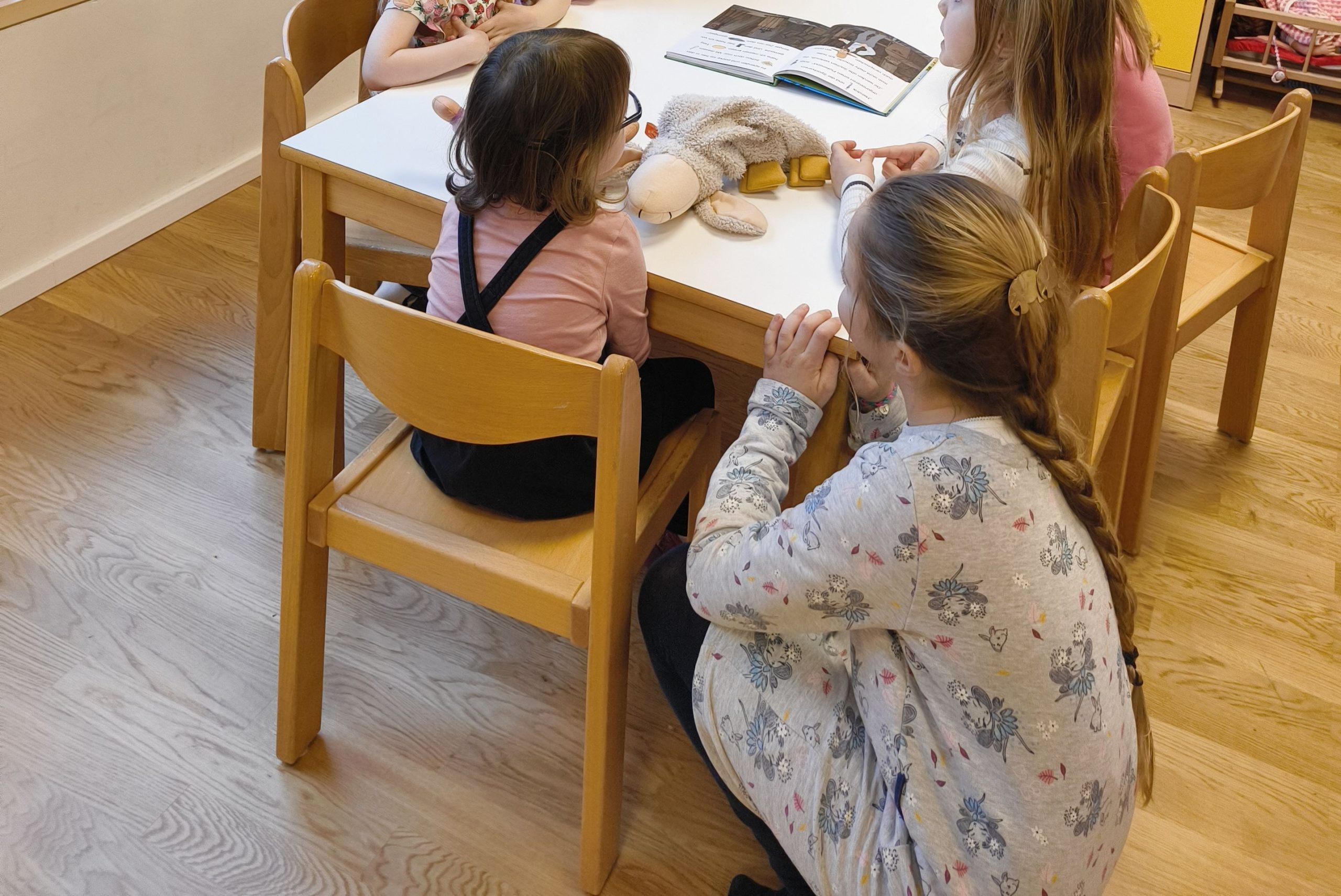 Für den Kindergarten hatten die Schülerinnen und Schüler zuvor Bilderbücher ausgewählt, die sie mit viel Begeisterung den Jüngeren vorlasen. Danach blieb noch Zeit für gemeinsames Spielen.
